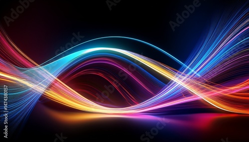 vibrant abstract waveforms with colorful light trails and smooth curves on a dark background