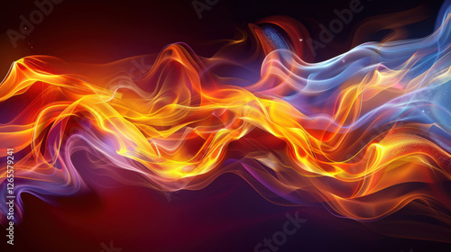 Vibrant abstract waves of orange, red, and blue light create dynamic visual flow, evoking energy and movement in captivating design