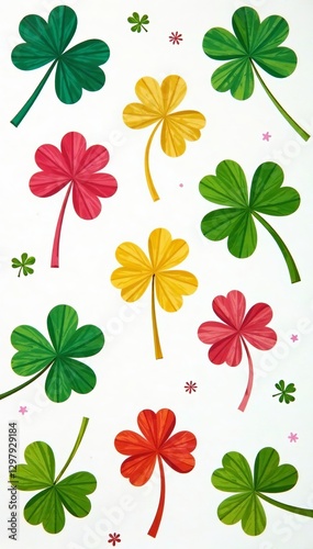 Vibrant and colorful four leaf clover pattern on white background, fortune, four leaf clover, green