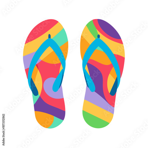 Vibrant and colorful pair of flip-flops with abstract patterns perfect for summer fun Vector