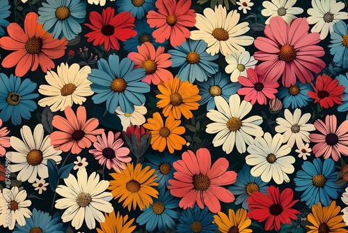 daisy, flower, colourful, bloom, vibrant, nature, garden, floral, flower petals, spring, summer, botanical, beauty, natural, many-coloured, pattern, texture, background, decorative, fresh, bright, cheerful, lively, flora, blossom, plant, season, meadow, field, wildflower, artistic, design, illustration, greenery, foliage, landscape, horticulture, gardening, bouquet, arrangement, aesthetic, picturesque, serene, tranquil, lush, high-coloured