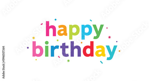 Vibrant birthday celebration text with playful confetti and colorful typography on a clean white background festive greeting