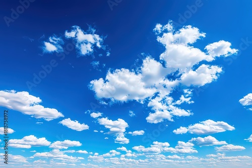 Vibrant Blue Sky with Fluffy White Clouds a Natural Landscape Scene