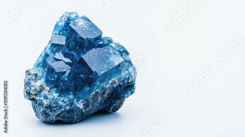 vibrant, blue, semi-precious, gemstone, angular, crystal, rough, exterior, bright, white, background, contrast, natural, mineral, geology, decorative, unique, raw, polished, beautiful, luxurious, no people