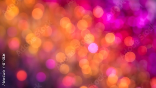 Vibrant bokeh background with glowing circles of orange pink and purple light creating a festive and magical atmosphere