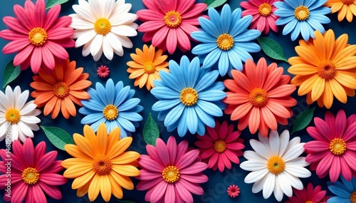 Vibrant chrysanthemum and daisy flowers pattern background, floral, colorful