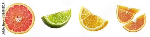 Vibrant citrus slices grapefruit, lime, lemon, and orange.