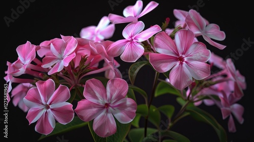 phlox, flower, pink, white, flocked, vibrant, dark, background, leaf, green, texture, depth, garden, botanical, floral, nature, plant, summer, blossom, beautiful, outdoors, bright, blooming, species, arrangement, colourful, closeup, fresh, lush, high-coloured, decoration, harmony, composition, wildflower, landscape, seasonal, growth, detail, elegant, aesthetic, cheerful, natural, ornamental, fragrant, display, scenery, beauty