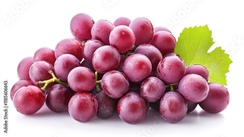 Vibrant clusters of fresh red grapes with green leaf isolated on pure white background perfect for healthy food and beverage concepts