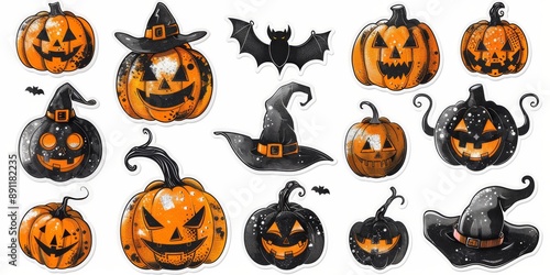collection, rhinestone, halloween, sticker, stark, white, background, festive, pumpkin, bat, spider, decoration, skittish, glistering, orange, black, shiny, craft, party, theme, seasonal, decor, fun, playful, vibrant, cute, creepy, eerie, costume, accessory, bricolage, celebration, artistic, design, holiday, element, creative, intricate, colourful, sparkling, children, whimsical