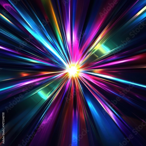 Vibrant, colorful radial lines radiating from a central point, creating a dynamic and energetic visual effect