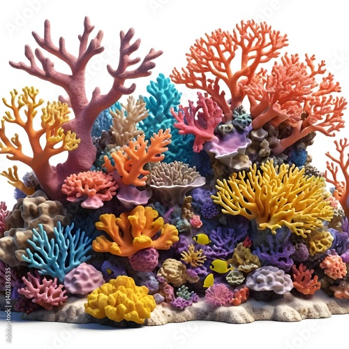 coral reef, coral, reef, underwater, ocean, sea, marin, aquatic, vibrant, colourful, tropical, exotic, ocean life, marine life, fish, ocean life, nature, wildlife, biodiversity, ecosystem, sea anemone, white background