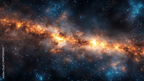 Vibrant cosmic galaxy, swirling colors of orange and blue, deep space scene, perfect for science themes or wallpapers.