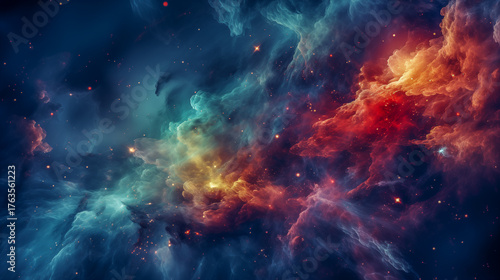 Vibrant Cosmic Nebula with Colorful Gas Clouds and Twinkling Sta