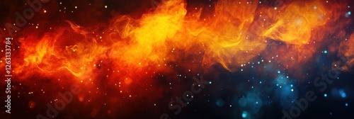 Vibrant cosmic nebula with fiery orange and blue interstellar clouds