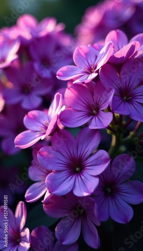Vibrant dense cluster of purple flowers in full bloom, creating a stunning display, flowers, botany