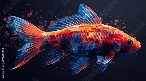 Vibrant digital illustration of a colorful ornamental fish with blue and orange hues against a dark background, showcasing artistic detail.