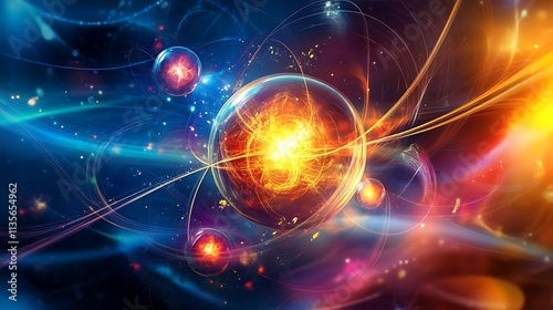 energy, atom, nucleus, particle, physics, quantum, science, abstract, cosmos, universe, explosion, vibrant, colourful, bright, glowing, light, line, swirl, motion, dynamic, futuristic, technology, space, galaxy, nebula, star, flare, aura, power, electricity, plasma, radiation, heat, fire, colours, design, background, illustration, artwork, digital, art, graphic, texture, pattern, abstract art, cosmic, aethereal