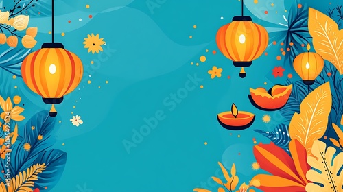 graphic, design, lantern, flower, leaf, celebration, festival, bright, colours, light, hindu, traditional, decorative, pattern, oil lamp, cheerful, autumn, culture, artwork, festive season, unique, creativity, joy, seasonal, ornamental, artistic, vibrant, background, beautiful, nature, design element, holiday