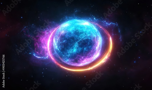 Vibrant energy orb with blue and purple glow surrounded by cosmic light effects