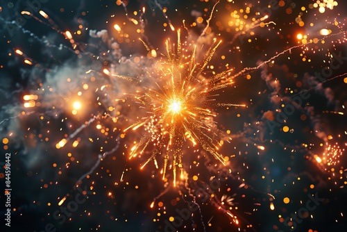 Vibrant explosion of colorful fireworks in the night sky, celebrating festive occasions with sparks and lights.