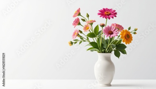 Vibrant Flower Arrangement Indoor Setting Floral Photography Bright Environment Close-Up View A Pristine White Vase