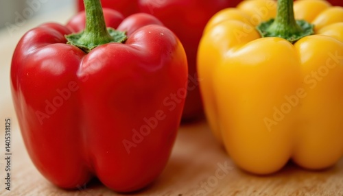 Vibrant Fresh Red and Yellow Peppers Closeup Kitchen Counter Food Photography Indoor Macro Culinary Delight