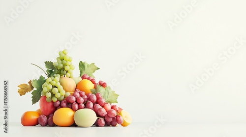 Vibrant Fruit Photo: Close-up of Freshly Picked Grapes, Oranges, and Apples on a Neutral Background. AI Generated