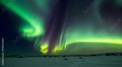 aurora borealis, aurora borealis, night sky, star, green, purple, vibrant, glow, phenomena, nature, winter, snow, landscape, arctic, cold, desolate, wilderness, dark, serene, tranquil, dramatic, celestial, astronomic, long exposure, photo, scenic, beautiful, aethereal, magical, majestic, breathtaking, stunning, atmospheric, travel, adventure, exploration, environment, natural wonder, tour tourism, science, dreamy