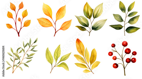 Vibrant Green and Yellow Leaves and Branches with Red Accents in Nature