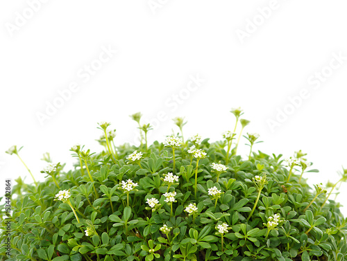 Vibrant Green Bush with Delicate White Flowers Nature's Exquisite Detail
