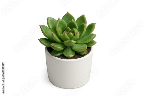 Vibrant green echeveria succulent thriving in a clean white pot, isolated on a transparent background, perfect for design projects