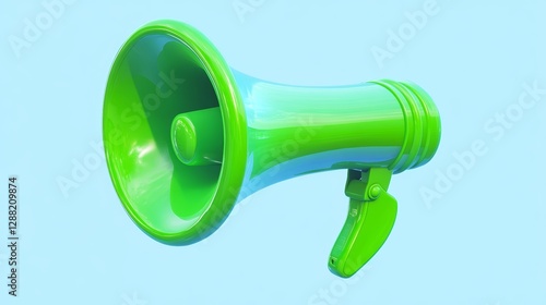 Vibrant Green Megaphone on Refreshing Blue Background