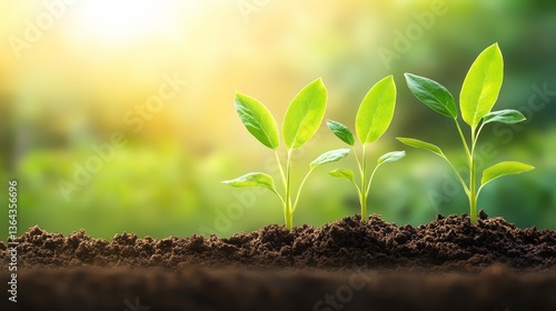 Vibrant green sprouts emerging from the earth, symbol of new life and growth young