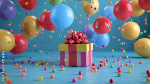 Vibrant Happy Birthday Celebration with 3D Gift Box and Colorful Balloons in High-Resolution 8K Quality