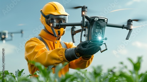 vibrant, illustration, farmer, joyfully, modern, farming, technology, natural, landscape, highlighting, innovation, agriculture, height, resolution, photo, minimalism