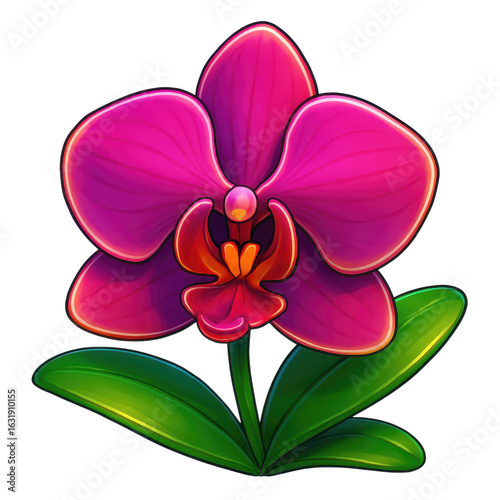 orchid, flower, magenta, pink, purple, red, orange, green, leaf, stem, bloom, botanical, flora, nature, tropical, exotic, delicate, elegant, beauty, illustration, graphic, design, three-dimensional