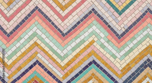 mosaic, tile, pattern, chevron, geometric, pastel, gem, tone, vibrant, colourful, texture, background, design, abstract, decorative, retro, vintage, wall, art, surface, creative, modern, unique, intricate, detail, construction, material, craft, hand-made, interior, exterior, architecture, facades, element, repeat, symmetric, contemporary, graphic, stylish, lively, cheerful, bright, fresh, cool, warm, rich, playful, dynamic, bold