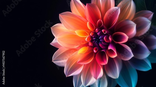 flower, dahlia, bloom, blossom, orange, pink, red, purple, colourful, vibrant, bright, dark, background, macro, closeup, nature, botany, flora, plant, floral, beauty, in, flower petals, blooming, design, botanical, photo, close, up, high, resolution, sharp, sharpened, detailed, high-coloured, intense, rich, colours, image, picture, shot