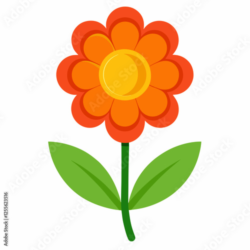flower, orange flower, orange, yellow, green, spring, nature, botany, garden, plant, blossom, leaf, stem, illustration, cartoon, children, children, education, greeting card, simple, vibrant, cheerful, cute, summer, floral, decorative, vector, digital artwork, graphic design, colourful, seasonal, spring flower, summer flowers, floral pattern