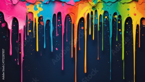 vibrant paint dripping on a dark surface, offering a visual feast of colors and textures