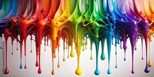Vibrant Paint Drips: Colorful Cascade on White Background - Stock Photo