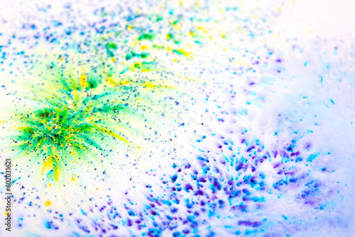 Vibrant Paint Powder and Splashes in Watercolour Painting Exploding Colour Rainbows