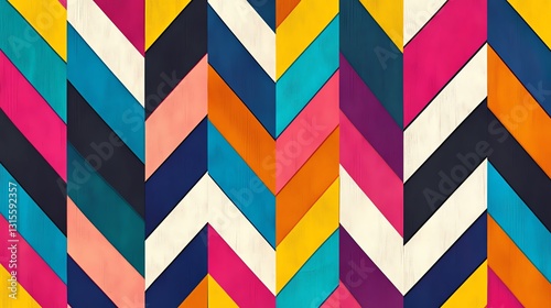 Vibrant Patterned Chevron Design Showcasing Bold Colors and Geometric Shapes on a Wooden Background in a Contemporary Art Style