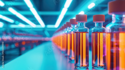 Vibrant pharmaceutical bottles in a modern laboratory a glimpse into advanced drug manufacturing and quality control processes