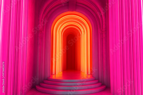 neon, pink, orange, glowing, light, archway, hallway, passage, corridor, tunnel, architectural, design, modern, vibrant, bright, illuminated, perspective, depth, stage, futuristic, geometric, abstract, contemporary, interior, structure, architecture, arch, column, building, stone, church, door, ancient, old, monastery, europa, cathedral, arch, abbey, entrance, cloister, palace, gallery, history, castle, travel, mediaeval, religion