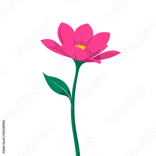 single flower, vibrant color, modern art, graphic design, digital artwork, floral pattern, spring flower, summer flowers, pink flower, design element, textile design, floral pattern, blossom, bloom, stem, leaf
