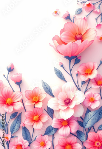flower, blossom, bloom, pink, floral, nature, botanical, decoration, spring, beauty, background, illustration, design, artwork, vibrant, plant, leaf, springtime, wildflower, garden, fresh, colourful, delicate, texture, composition, natural, style, elegant, creative, pattern, love, cheerful, growth, symbolic, seasonal, soft, unique, romantic, warmth, pure, serene, gorgeous, visual, whimsical