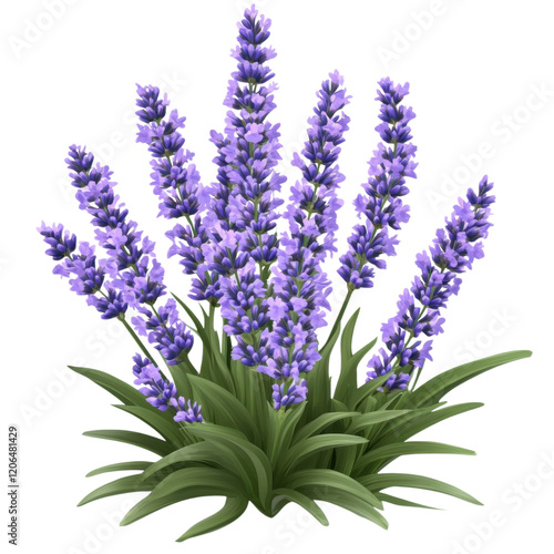 Vibrant Purple Lavender Flowers Bush Aromatic Herb Plant Detailed Illustration