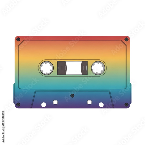 Vibrant rainbow cassette tape on black background